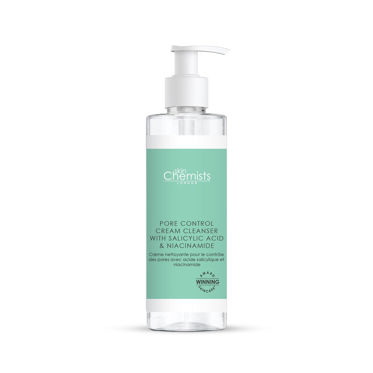 Introducing skinChemists Pore Control Cream Cleanser, a powerful 200ml formula designed to purify and rejuvenate your skin. Infused with Salicylic Acid and Niacinamide, this cleanser effectively targets pores, reduces excess oil, and combats blemishes, making it ideal for those seeking a clearer complexion. The luxurious blend of Shea Butter, Glycerin, and Collagen Amino Acids nourishes and hydrates, while the soothing properties of Panthenol and Sodium Hyaluronate help to maintain your skin's moisture balance. With each use, experience the refreshing sensation of clean, revitalized skin, free from impurities and ready to glow. Elevate your skincare routine with this essential cleanser that harmonizes nature's best ingredients for radiant results.