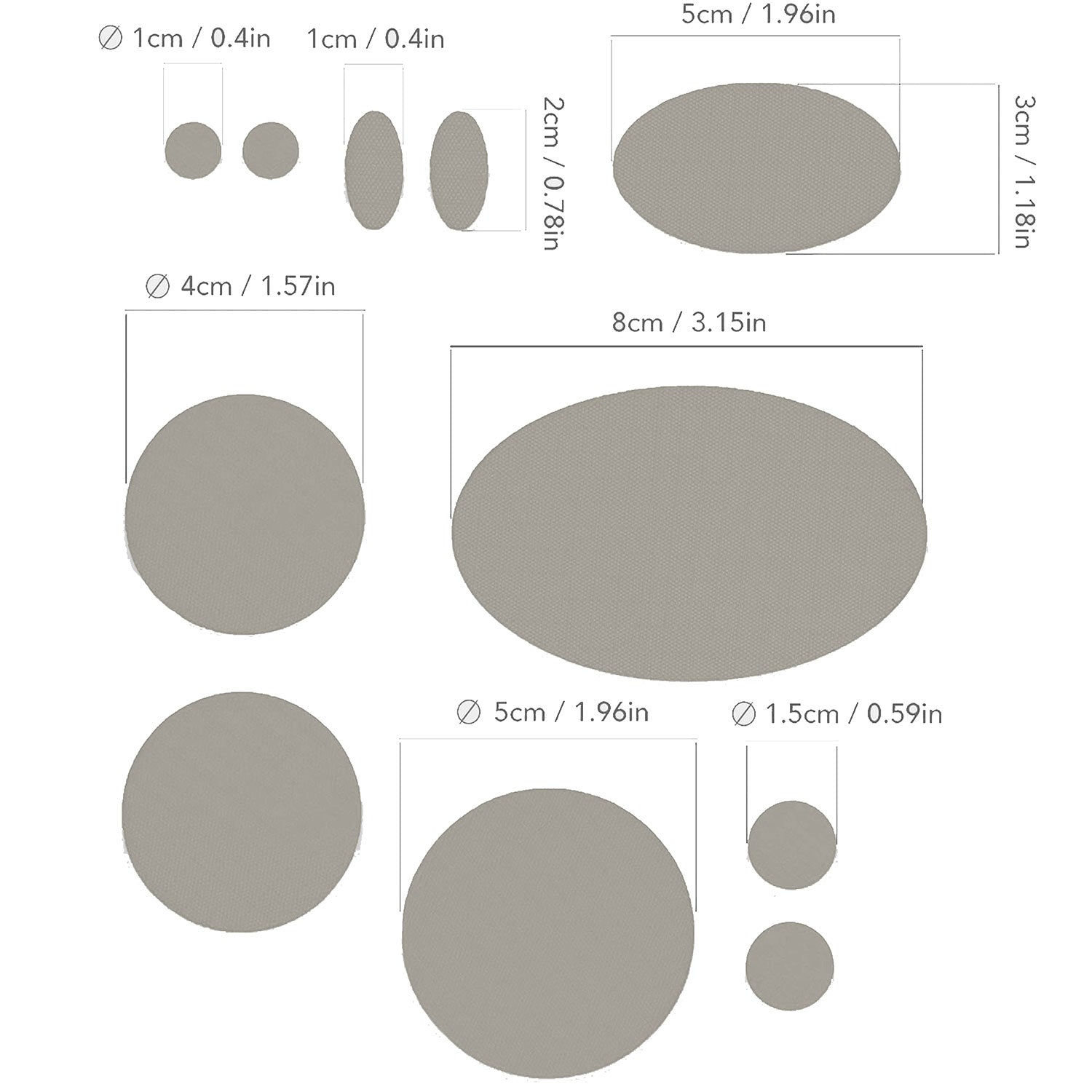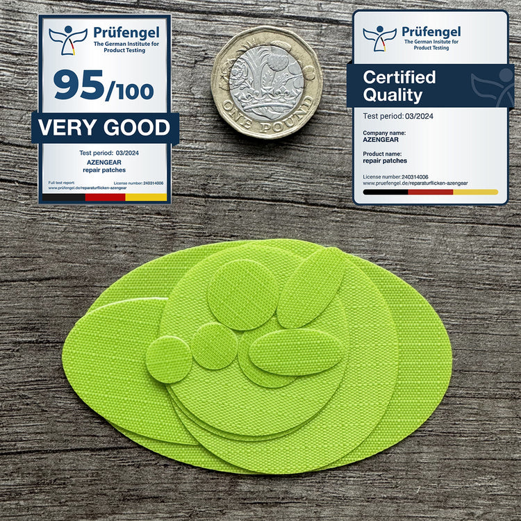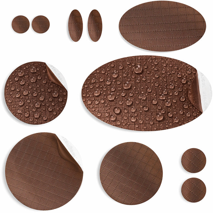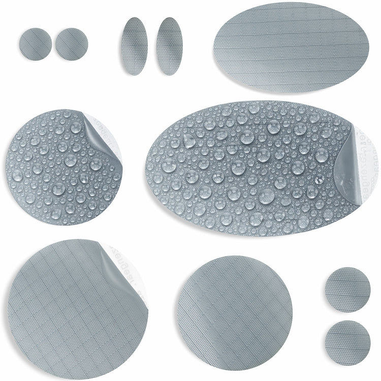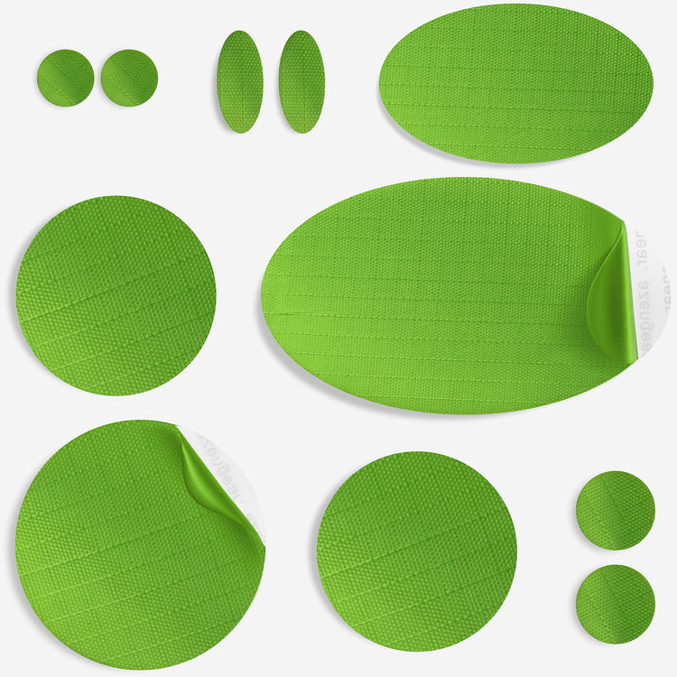 • 11 pre‑cut patches for targeted repairs: each kit includes 11 self-adhesive nylon polyester patches: 1 large oval (80 x 48 mm), 1 medium oval (50 x 30 mm), 2 mini ovals (20 x 10 mm), 1 large circle (⌀50 mm), 2 medium circles (⌀40 mm), 2 small circles (⌀15 mm), and 2 micro circles (⌀10 mm). Perfect for targeted repairs on different gear and fabric types.